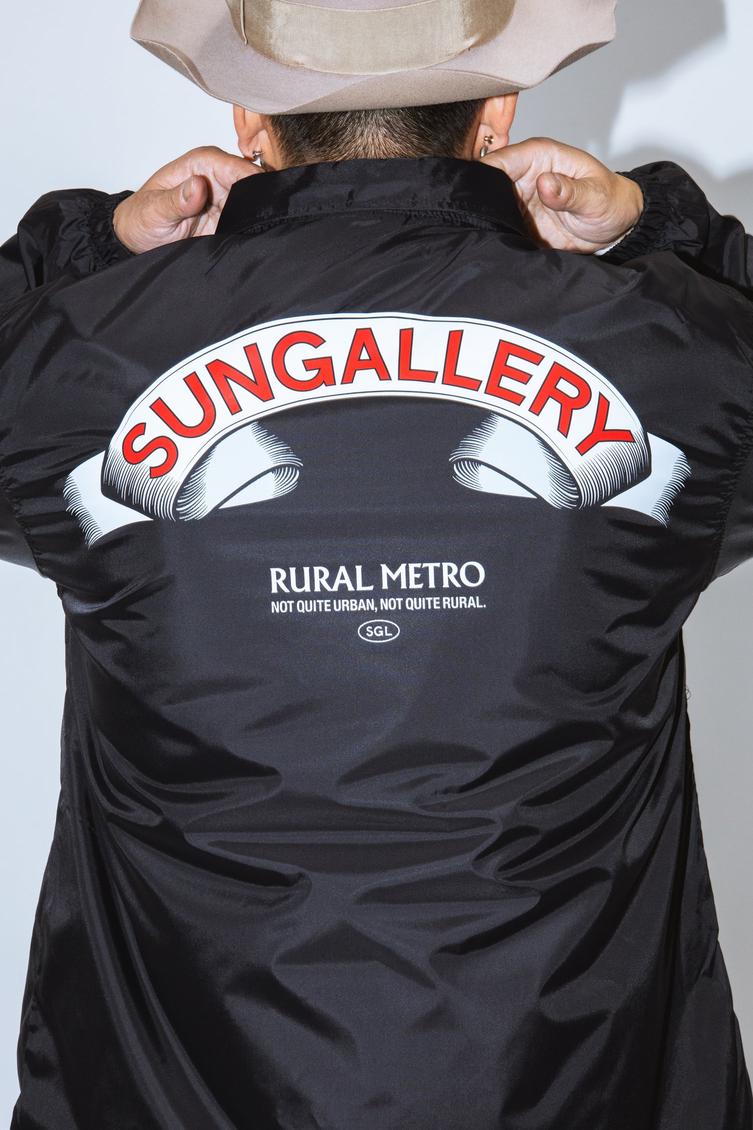 柔らかな光沢のナイロンや背面のグラフィックが目を惹く、NYLON COACH JACKET “RIBBON”。