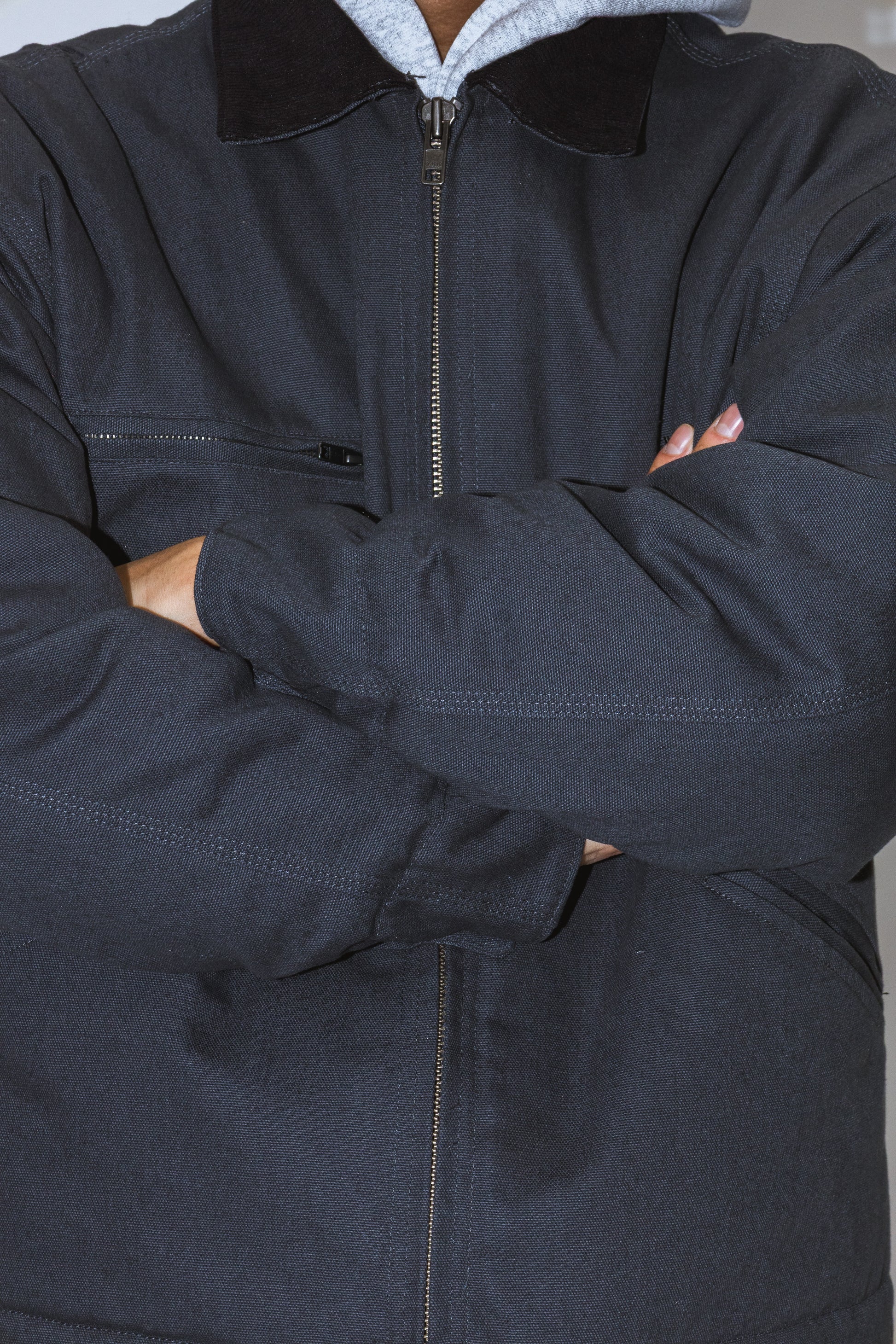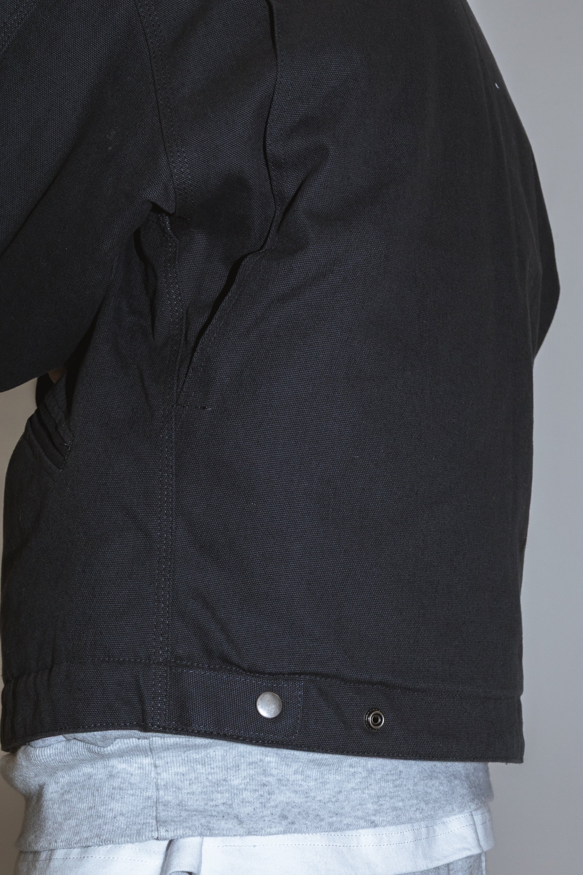 12オンスのタフで厚みのあるダック生地を表地に使用しており、内側のキルティングと組み合わさることで防風性・保温性が高まった本格仕様。