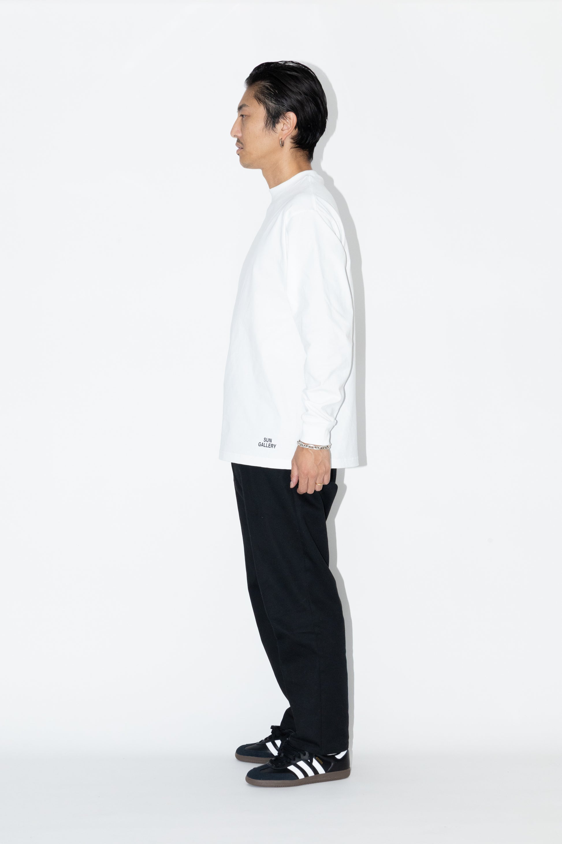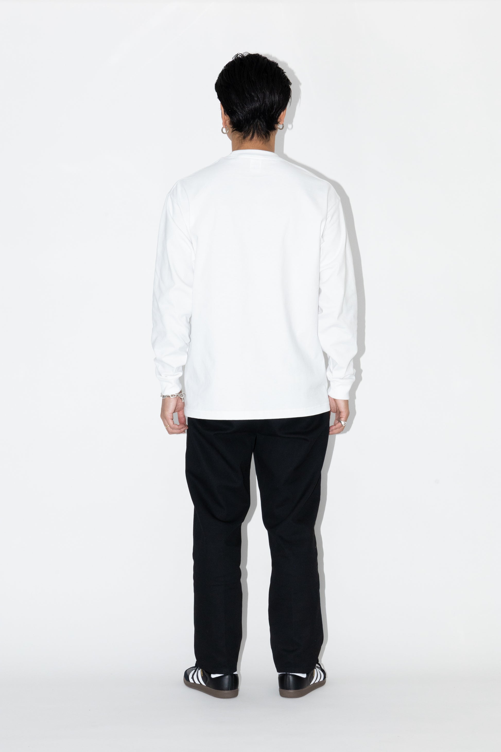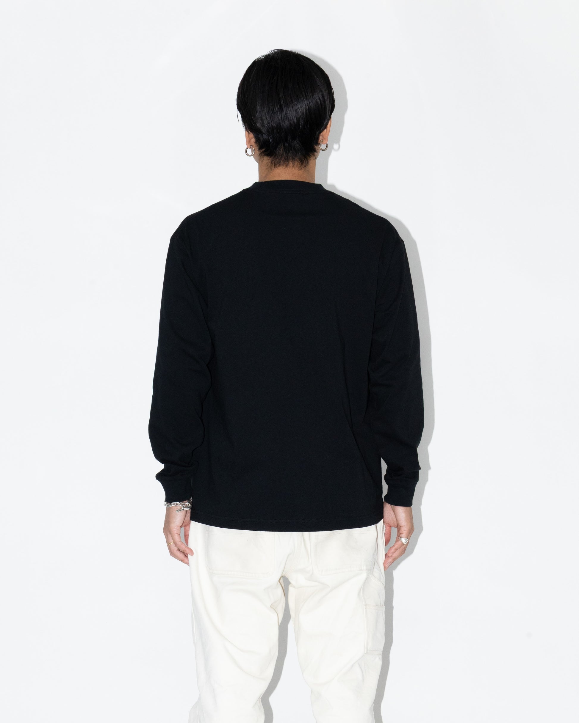 2.1インチの袖口リブと捻りの効いたボックスシルエットが相まって、ほどよい緩急のある抜け感を演出。