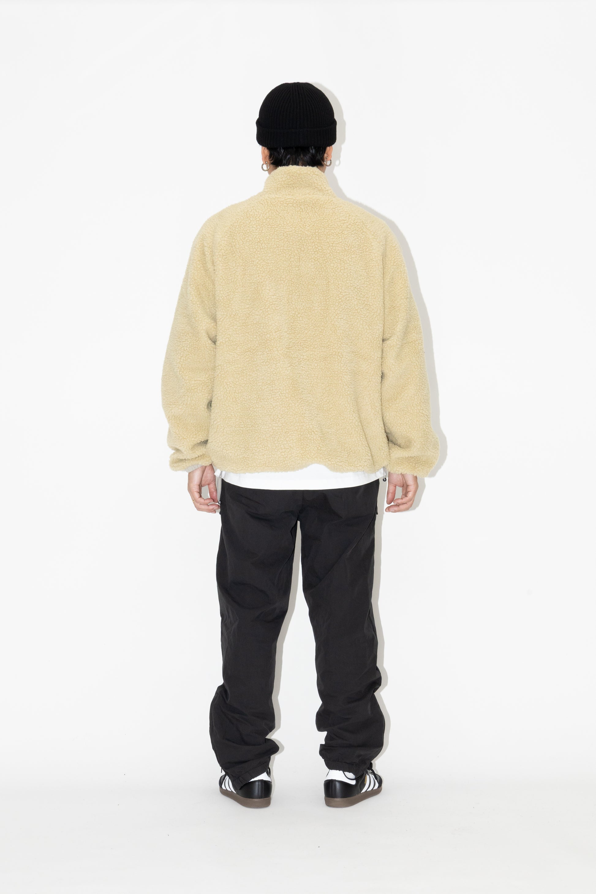 ナイロン面にはワッペンを、ボア面には刺繍を施しました。ジーンズやスウェットパンツなど幅広いアイテムに馴染む、男女問わず着用できるユーティリティなアイテムです。