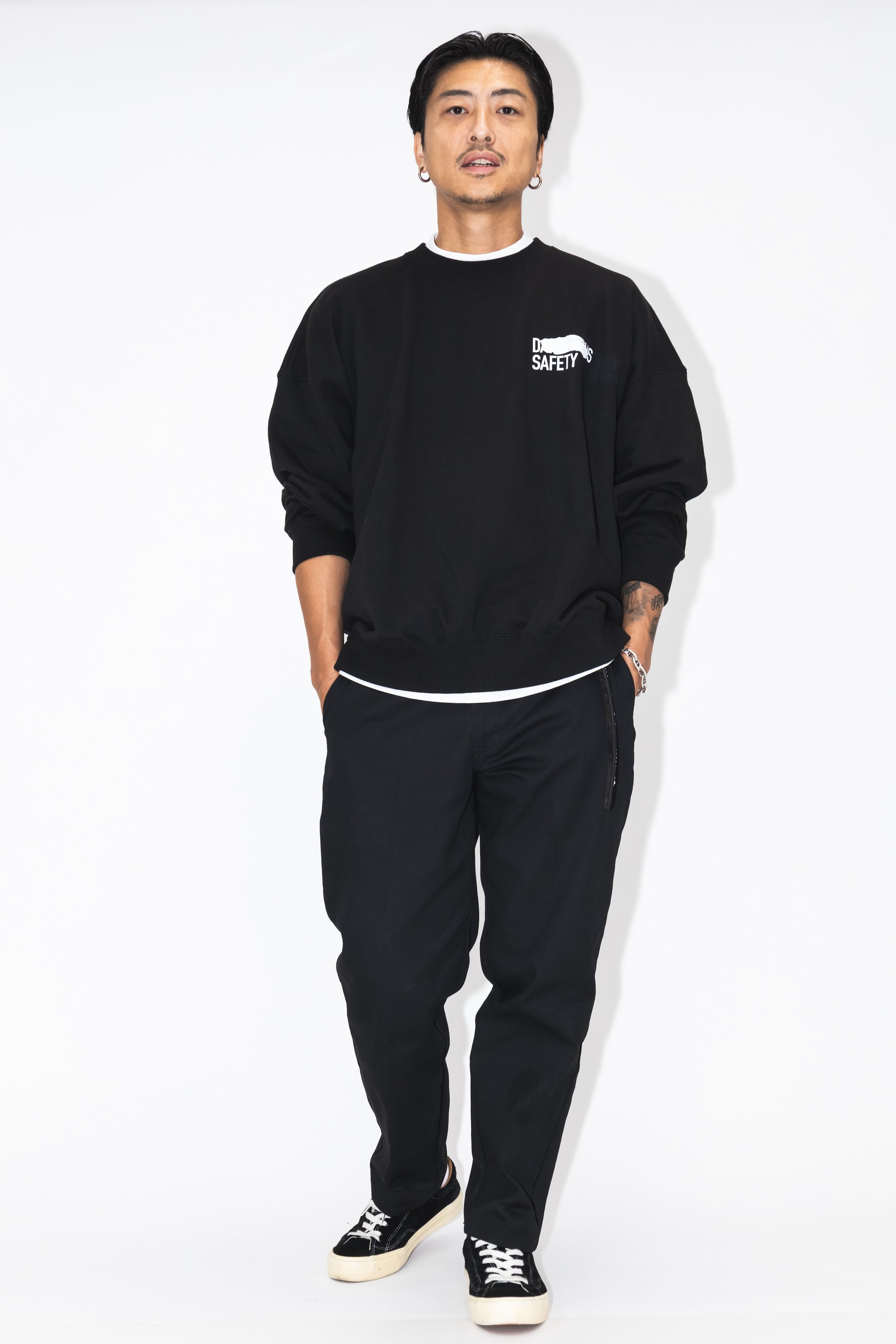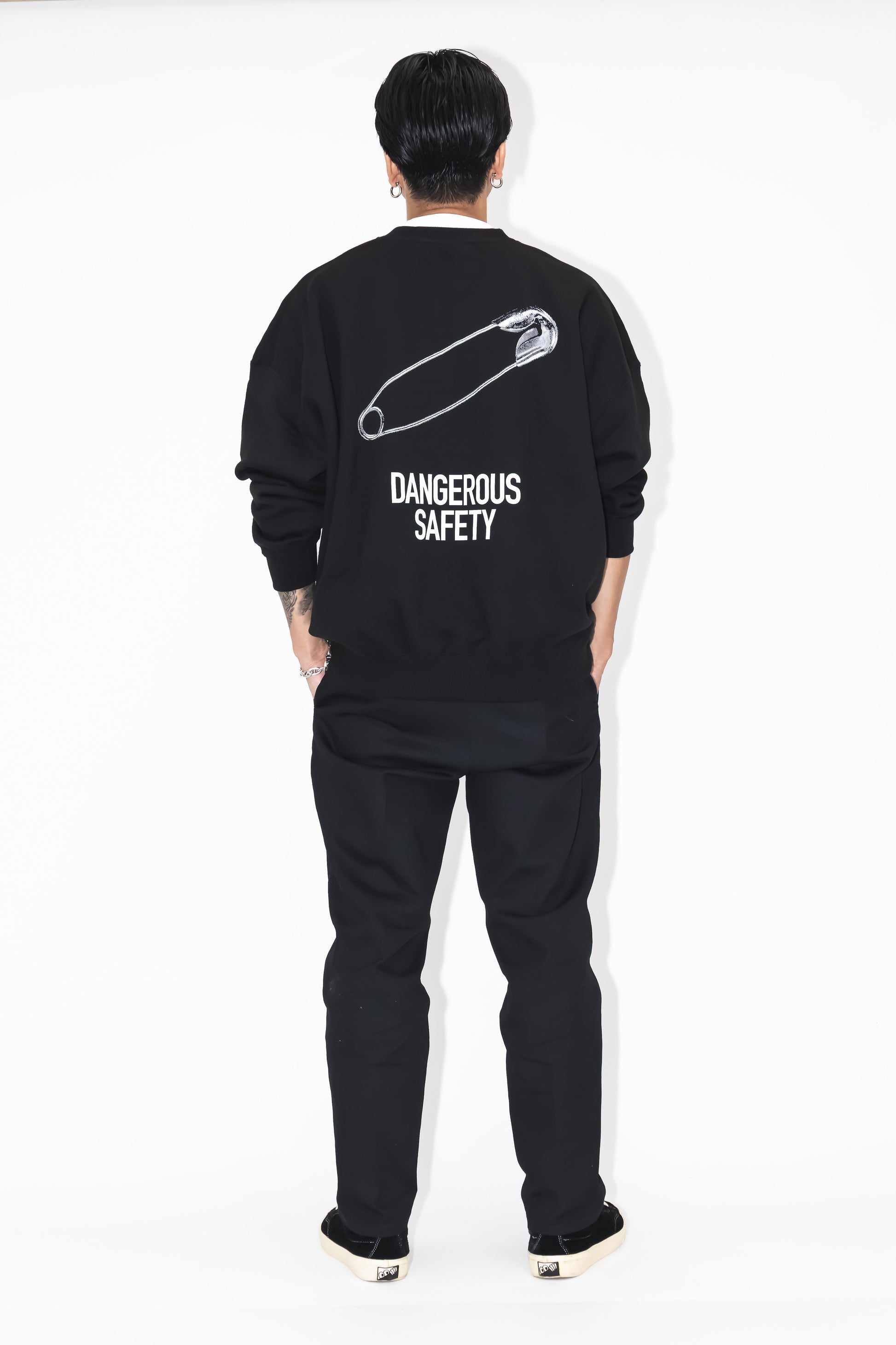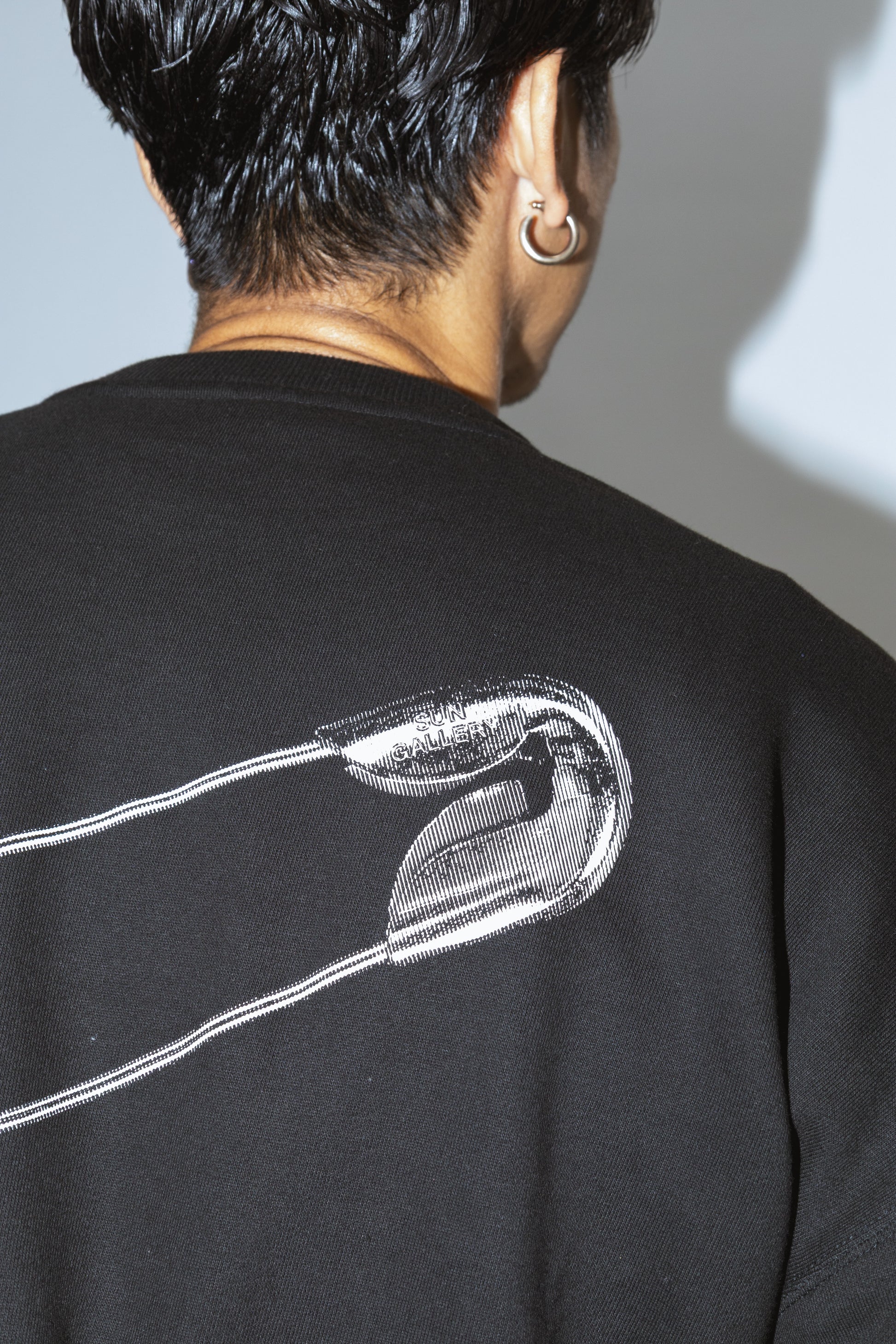 リアリティのある大胆なグラフィックとタイポグラフィが施された、ボックスシルエットのOVERSIZED SWEATSHIRT “SAFETY-PIN”。