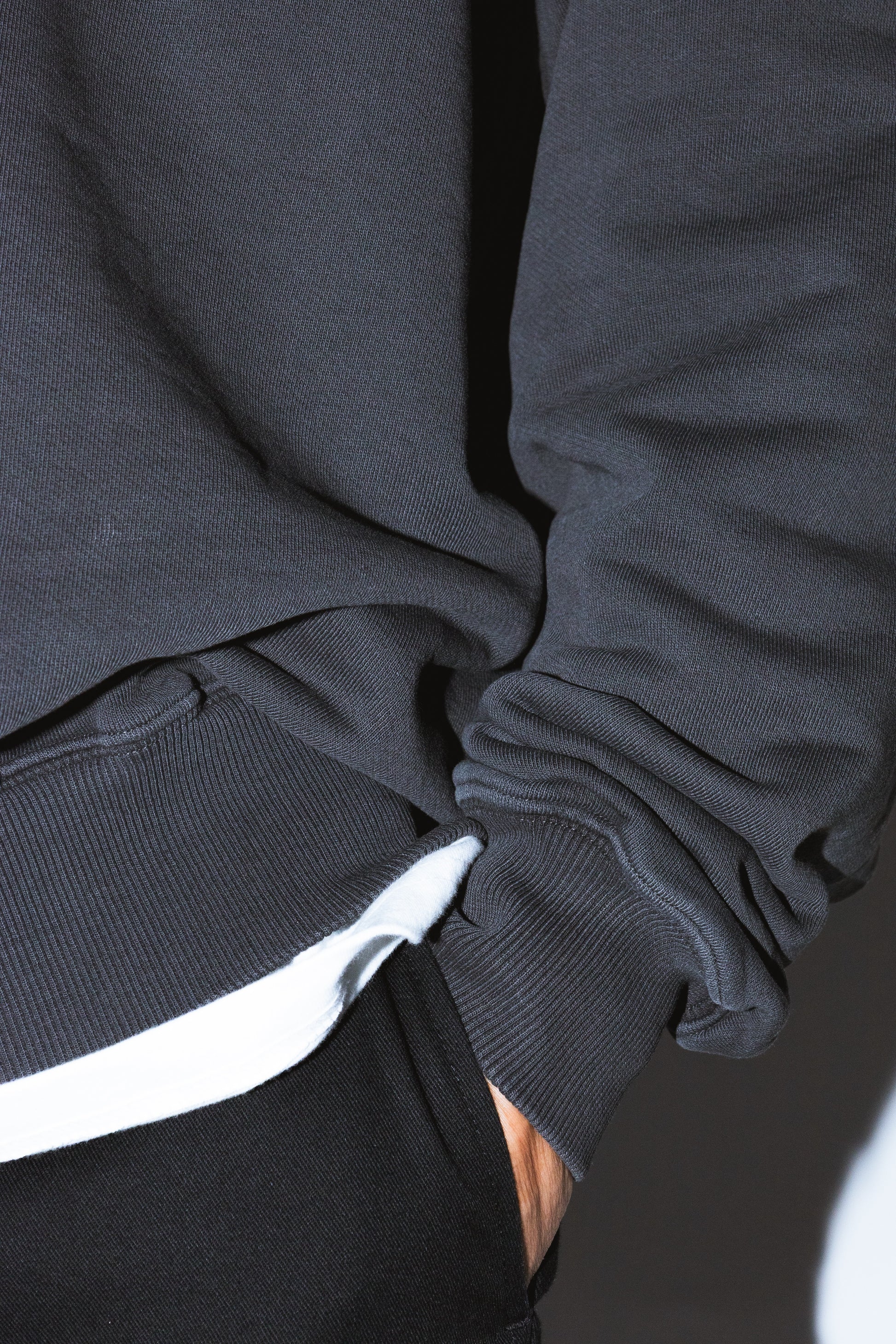 裏地はパイル仕様で快適な通気性と保温性を兼ね備えています。またゆったりとしたシルエットに対し、首・袖・裾の強度の高いリブがメリハリのあるバランスを構築しています。