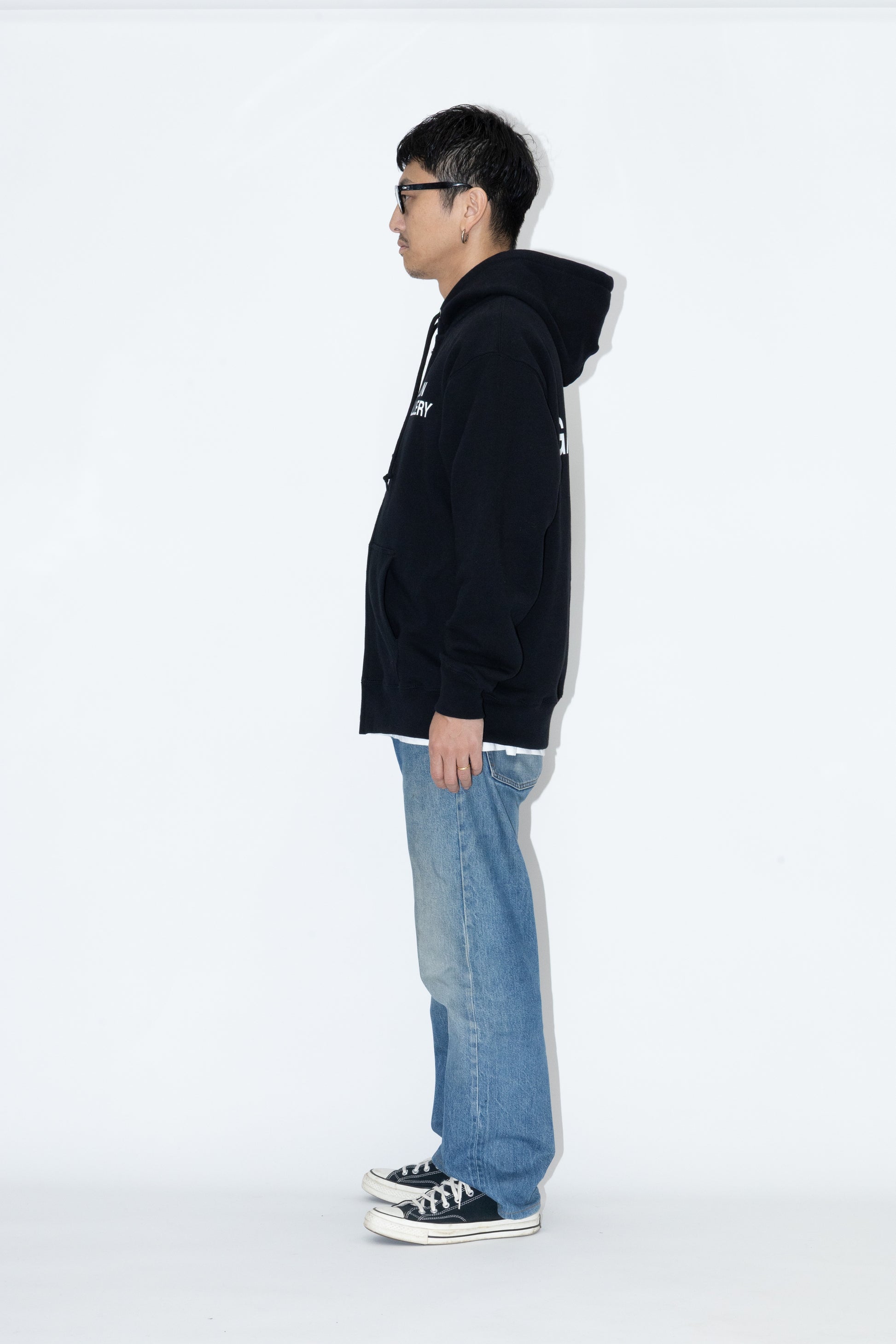 また身幅が広く、着丈が短いボックスシルエットであるため、スウェットフーディながらも洗練された大人な印象にアップデートされています。