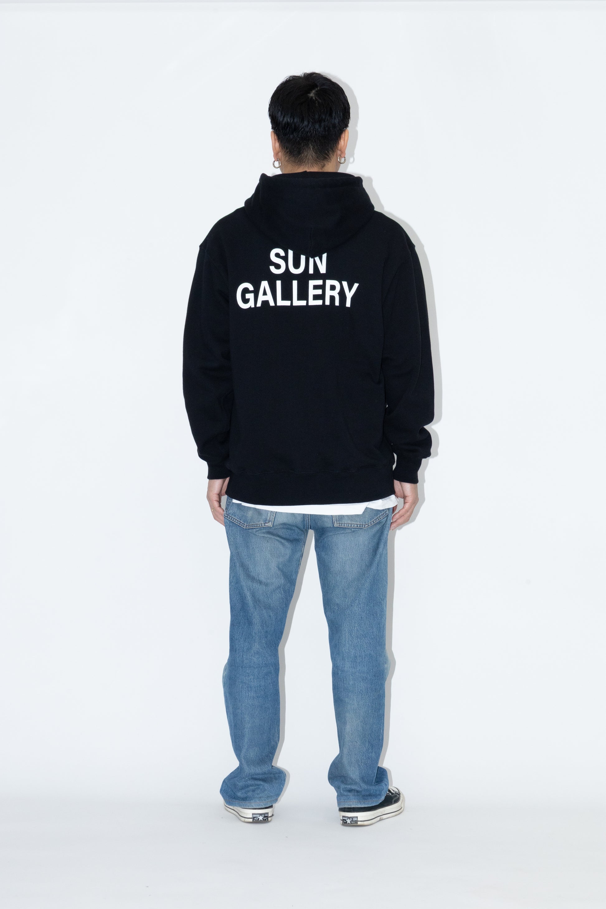 アイコニックなSUNGALLERYロゴを、胸元と背中の両面に大胆にプリントしています。