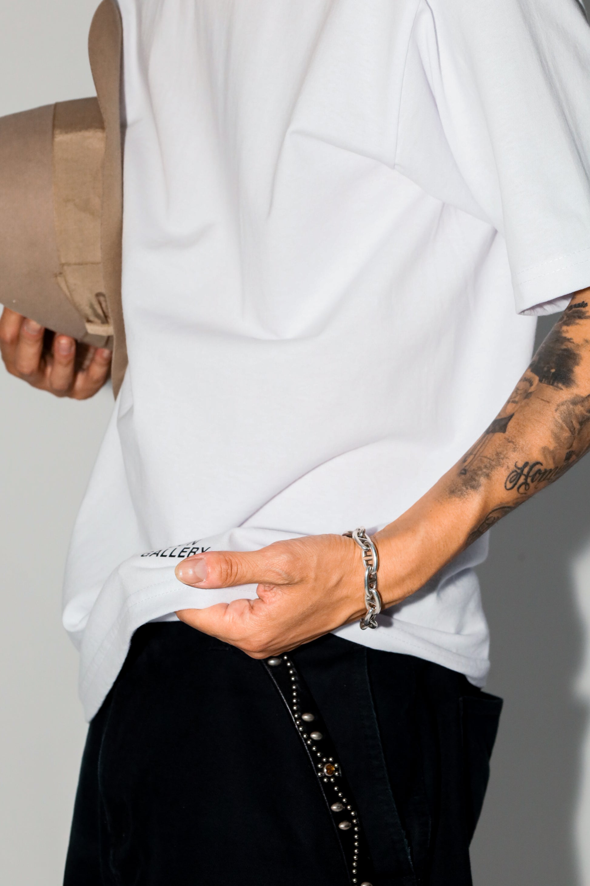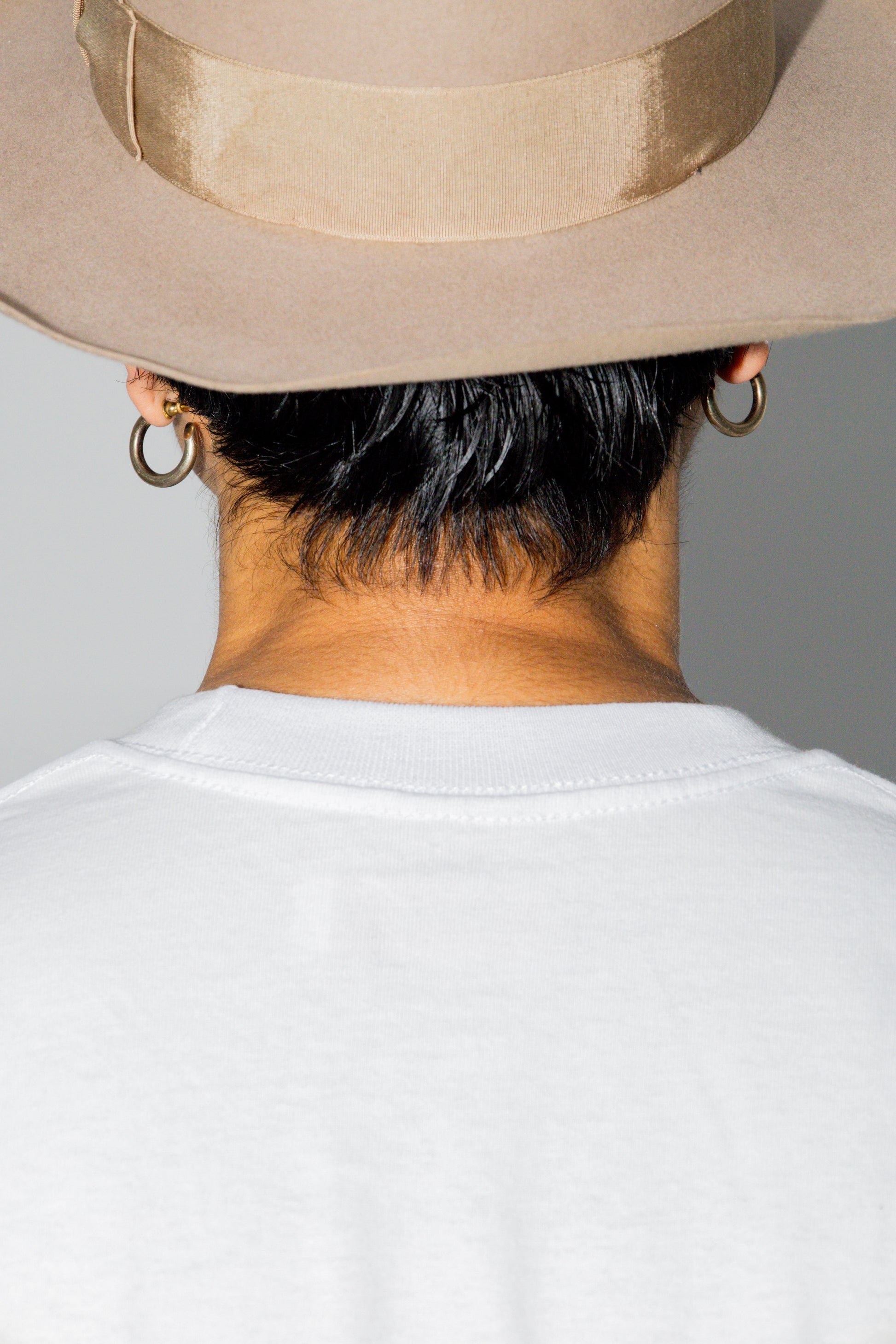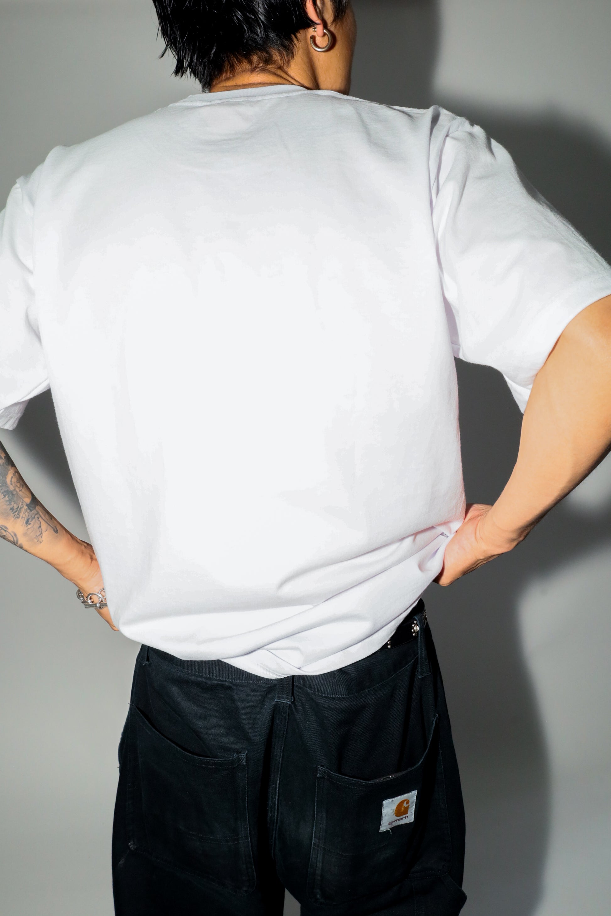 6.5ozの目の詰まった頑丈な生地と袖丈やアームホールをやや短くしたコンパクトなシルエットにより、全体に静かな洗練さを感じさせます。クリーンな白が持つ眩しいほどの明るさが、日常に清潔感と落ち着きをもたらす一枚です。